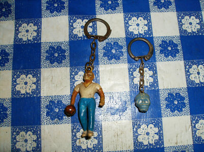 Title (ebay affiliate link): 2 VINTAGE KEYCHAINS BOWLER W/BOWLING BALL & SKULL