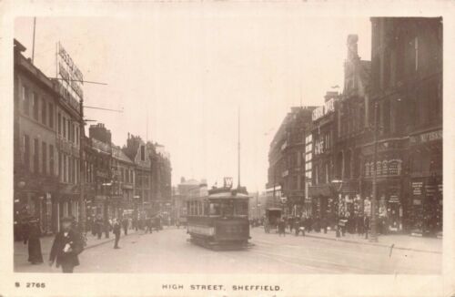 YORKSHIRE SHEFFIELD HIGH STREET TRAM #211 & SHOPS PHOTO CARD
