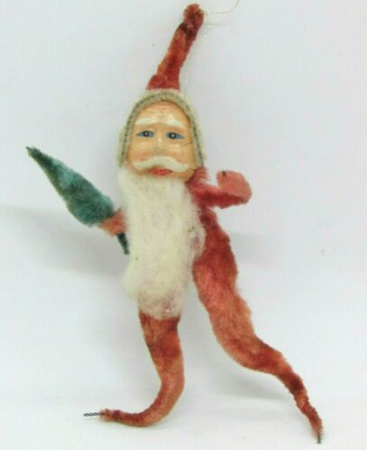 Antique Germany Chenille Bottle Brush SANTA Christmas Ornament with Paper Face