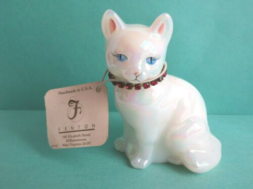 Fenton Iridized Milk Glass July Birthday Cat Ruby Rhinestone Collar, S. Shepherd