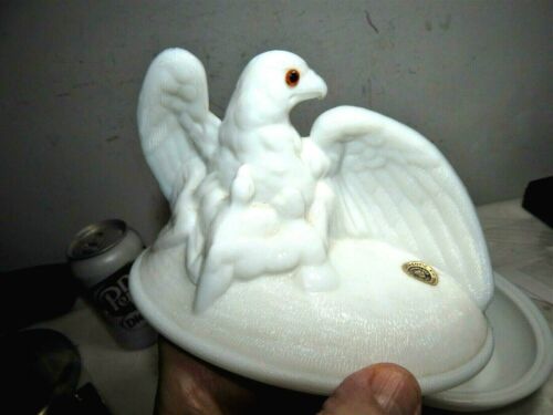Title (ebay affiliate link): Vintage Westmoreland White Milk Glass Covered Eagle Candy Dish w Sticker / Nice