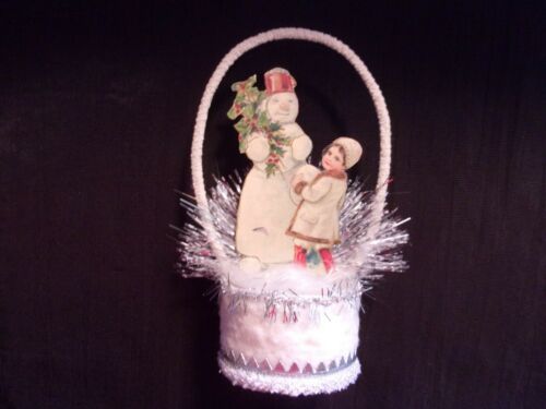 Title (ebay affiliate link): Antique Look CHRISTMAS Ornament, GIRL--Snowman SCRAP, Tinsel, Handmade