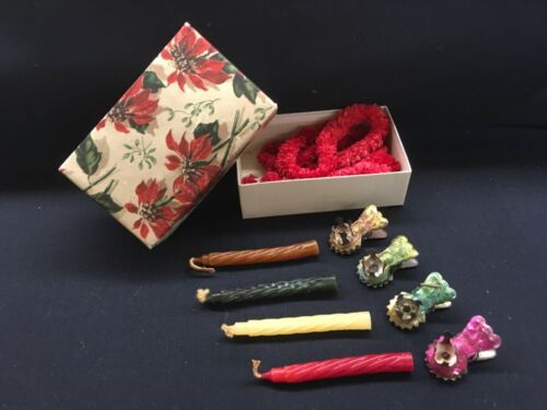 Title (ebay affiliate link): Antique Early German Christmas Tree Candle Clips, Candles, Box & Paper Garland