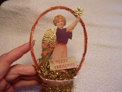 Title (ebay affiliate link): Antique Look CHRISTMAS Ornament, ANGEL--''Merry Christmas'' SCRAP, Handmade