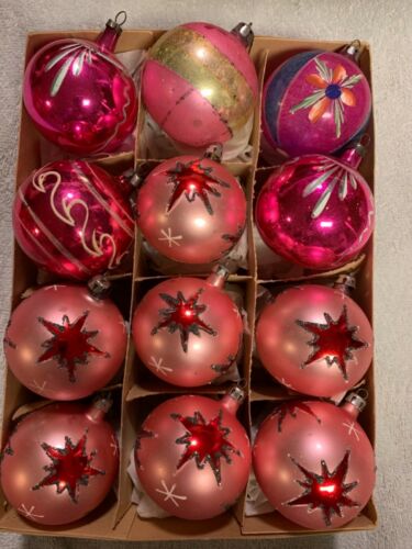 Title (ebay affiliate link): 12 Vintage Poland Christmas Tree Pink Glass Ornaments