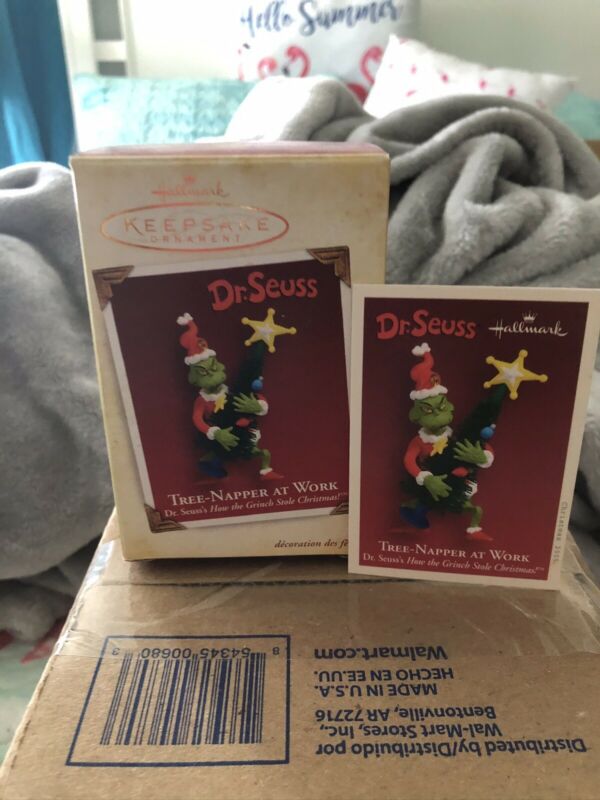 Title (ebay affiliate link): Hallmark Keepsake TREE NAPPER AT WORK Dr. Seuss Grinch Ornament - Box