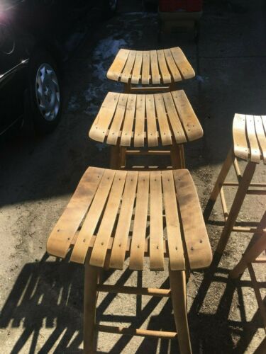 Title (ebay affiliate link): Lot of 4 Vintage Wooden Slatted Backless Bar Stool