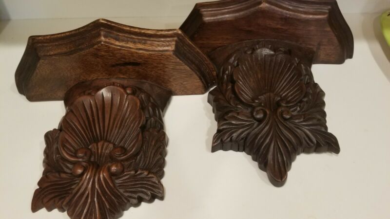 Title (ebay affiliate link): TWO VINTAGE PRE-OWNED LARGE ORNATE CARVED WOOD DISPLY WALL SHELF SCONCE