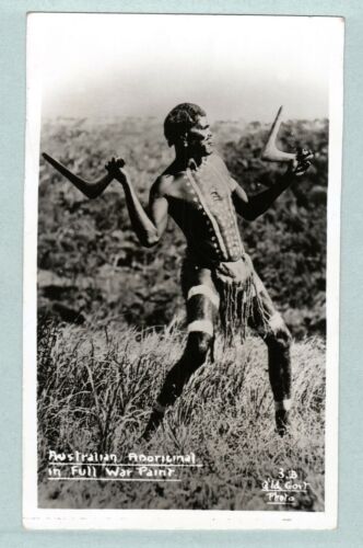 Title (ebay affiliate link): VINTAGE POSTCARD RPPC AUSTRALIAN ABORIGINAL IN FULL WAR PAINT QLD GOV PHOTO