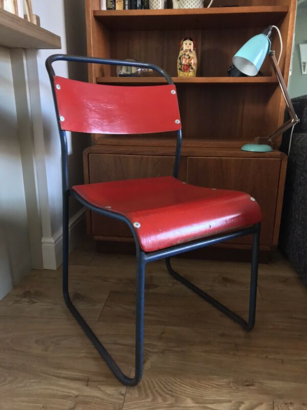 Title (ebay affiliate link): Vintage Remploy C. 1960s School Chair in Red/blue Industrial Utility Desk Dining