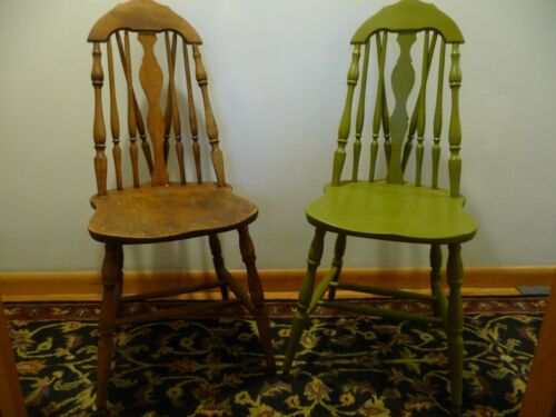 Title (ebay affiliate link): Set of 4 Vintage Maple Wood Kitchen Chairs - Splat Tapered Back