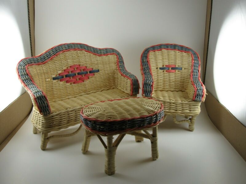 Title (ebay affiliate link): VINTAGE Wicker Doll Chair Chaise Lounge/Loveseat and table set of 3, Very Cool !