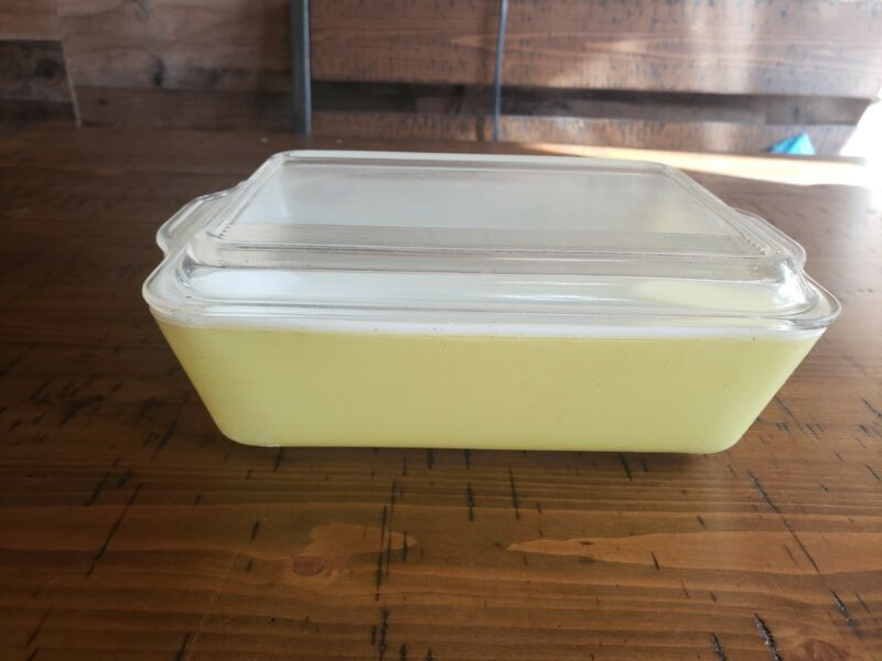 Vintage pyrex casserole dish with lid A-14 yellow