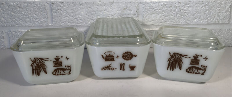 Title (ebay affiliate link): 6 Piece Vintage Pyrex Early American Refrigerator Dish Set W Lid 501 502