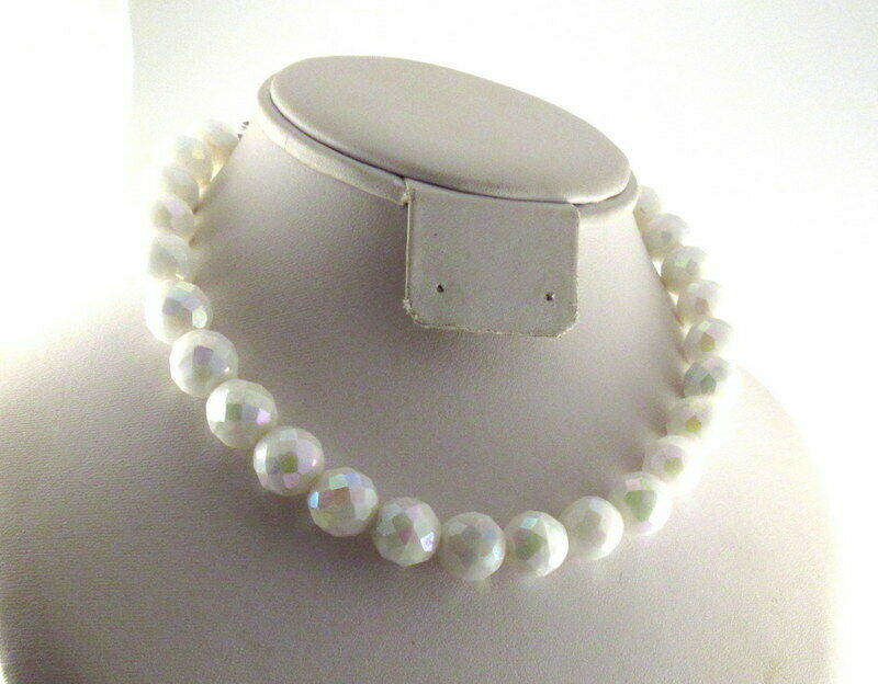 Vintage Faceted AB Milk Glass Bead Necklace