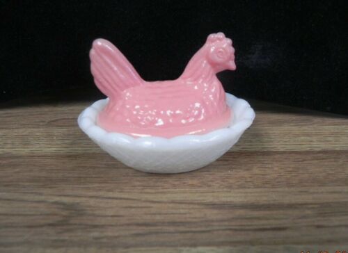 Title (ebay affiliate link): PINK AND WHITE MILK GLASS HEN ON NEST..SALT HEN...PINK WHITE GLASS HEN ON NEST