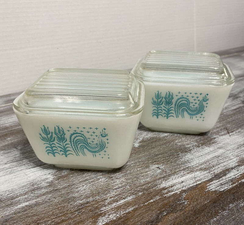 Title (ebay affiliate link): Vintage Amish Butterprint turquoise refrigerator dishes 4 pc 1 1/2 C 501 minty