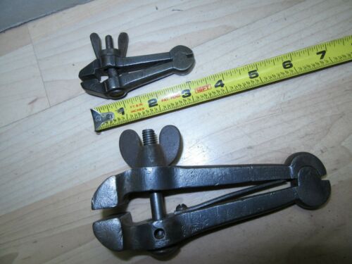 2 Vintage Small Jewelers Hand Vises 1 marked Cleer 2nd G W Daniels Waltham