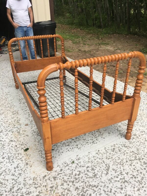 Title (ebay affiliate link): Vintage Jenny Lind Wooden Rounded Spindle Single Bed Springs Antique Classic