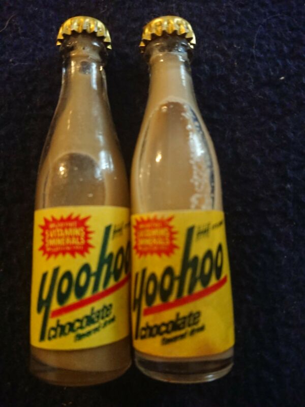 Title (ebay affiliate link): 2-VINTAGE MINIATURE Yoo-hoo BOTTLES WITH METAL LIDS 3" TALL