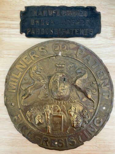 Antique Safe Plaque LARGE MILNERS'' PATENT & PARSONS PATENT