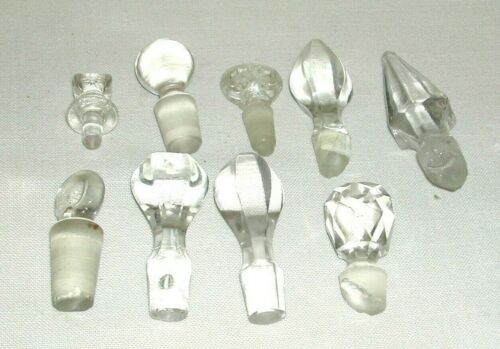 NINE VINTAGE GLASS STOPPERS LIQUOR PERFUME
