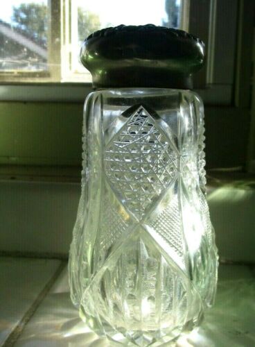 ANTIQUE VINTAGE Sugar Shaker - Brilliant Cut Glass Sterling Top