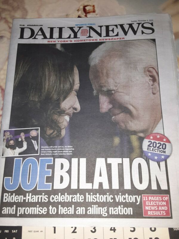 Title (ebay affiliate link): Joe Biden Kamala Harris Win Elections History NY Daily News November 11 2020