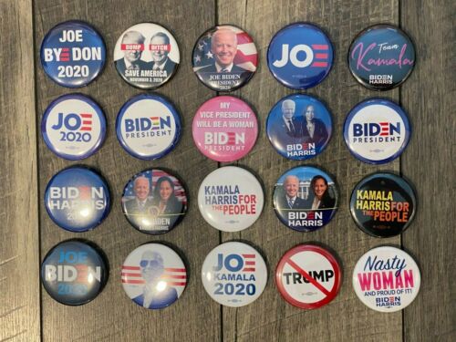 Title (ebay affiliate link): 20 Different Joe Biden Kamala Harris President 2020 Set Buttons Pins Pinbacks
