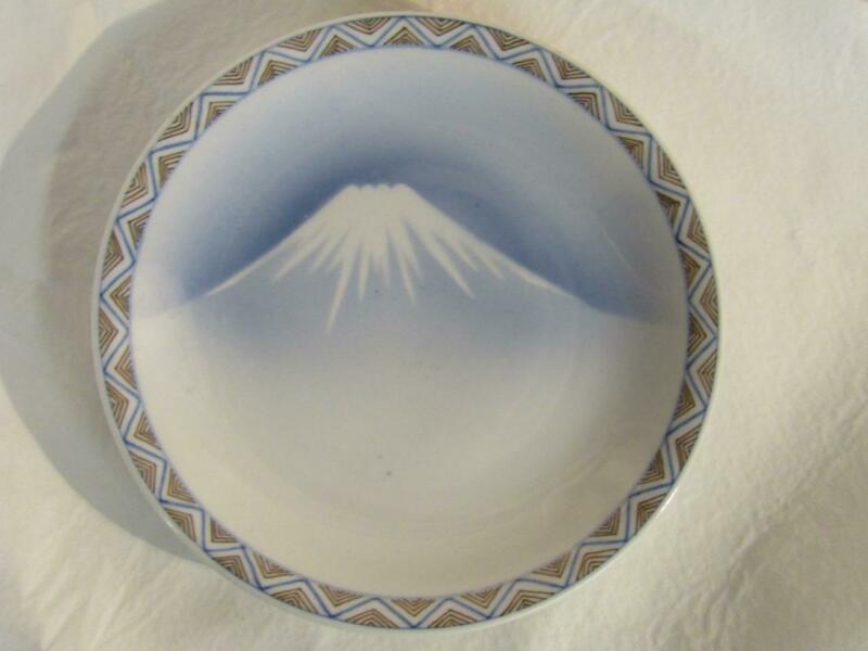 SET 6 OLD JAPANESE PORCELAIN 7" PLATES OF MT FUJI - SIGNED