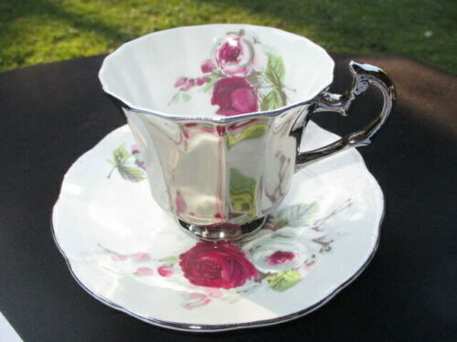 Title (ebay affiliate link): CUP SAUCER ROYAL ROSE PLATINUM SILVER HUGE PINK WINE ARTISTRY CABBAGE ROSES