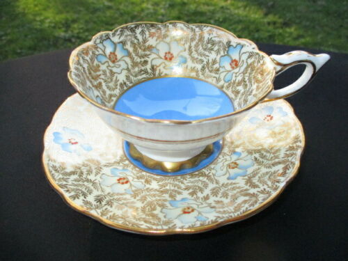 CUP SAUCER ROYAL STAFFORD BLUE AMARYLLIS GOLD CHINTZ SOLID BLUE WELLS