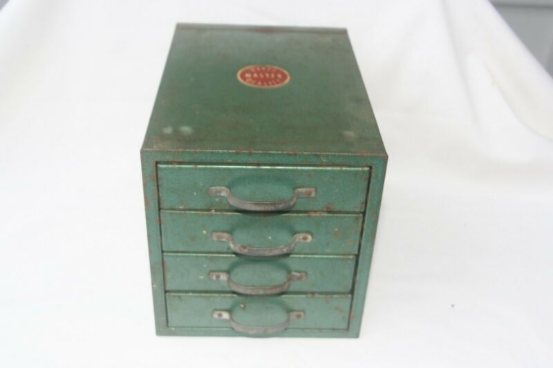 Title (ebay affiliate link): Vintage Wards Master Quality Metal Organizer Small Tool Box with 4 Drawers
