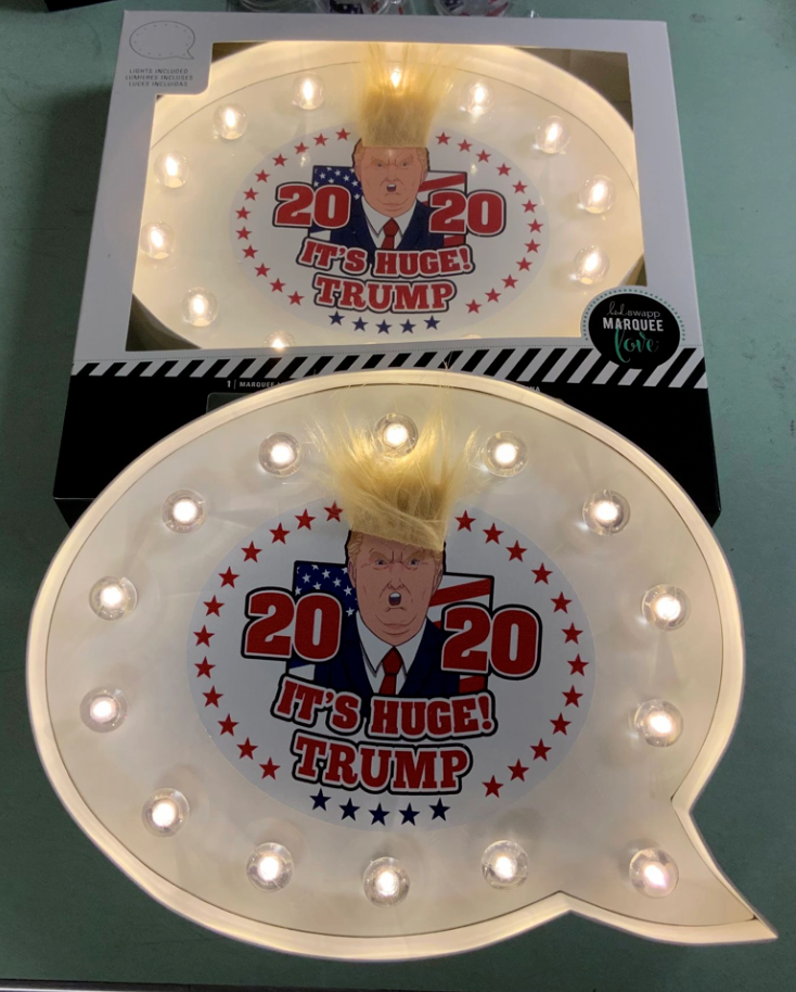 Title (ebay affiliate link): PRESIDENT DONALD J TRUMP 2020 FAUX HAIR MARQUEE LIGHT KIT, New in Box