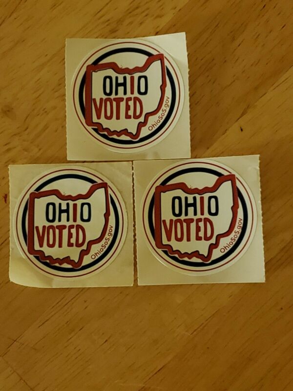 Title (ebay affiliate link): Ohio I Voted Sticker. 2020 Presidential Election. Trump vs Biden. 3 Stickers.