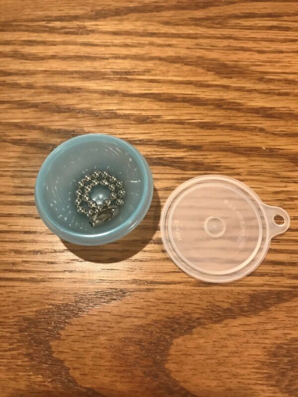Title (ebay affiliate link): Vintage Tupperware Tiny Wonderlier Mini Plastic Bowl w/ Lid Key Chain Blue