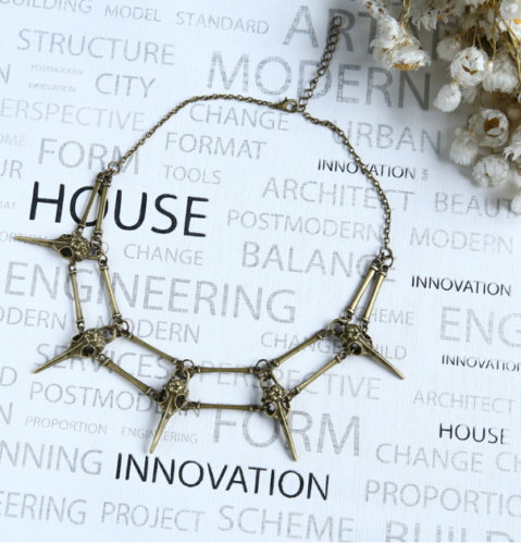 The RAVEN Pendant Necklace Antiqued Brass Bird Skull, Chocker Necklace Statement