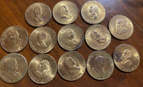 13 VINTAGE BRASS PRESIDENTIAL TOKENS