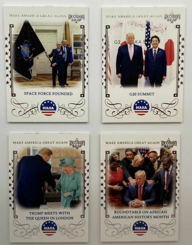 Title (ebay affiliate link): Decision 2020 Political Donald Trump MAGA 4 Card Lot Space Force G20 The Queen