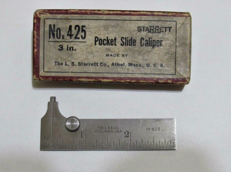 Starrett No. 425 rare 3" inch pocket slide caliper machinist tools tool with box
