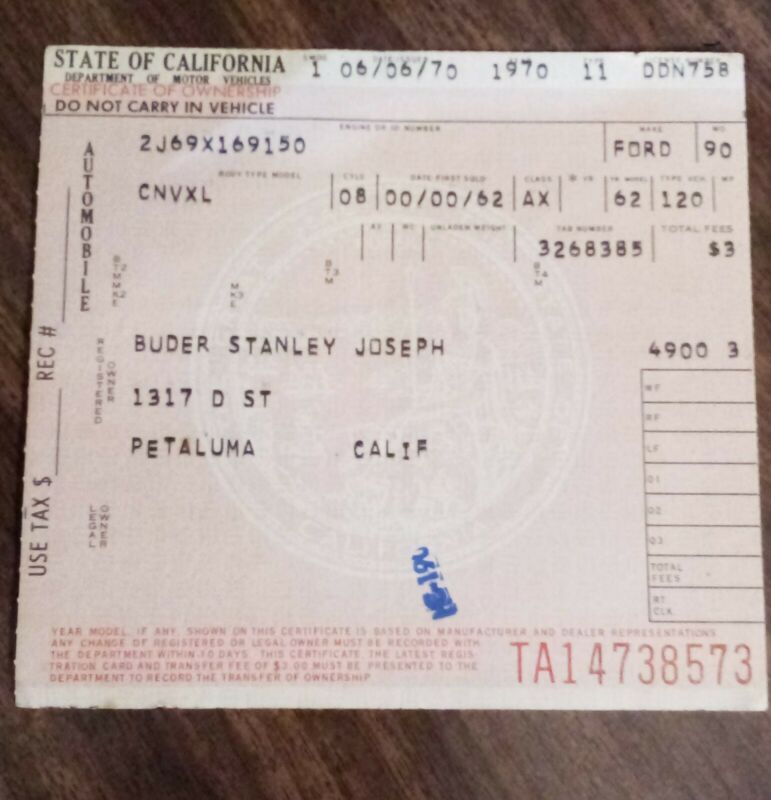 Historical Documents 1962 Ford Galaxie 500xl 2dr Convertible Title