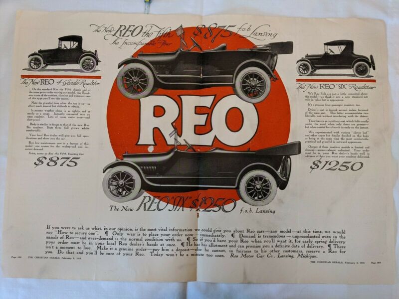 Title (ebay affiliate link): 1916 Vintage LARGE REO Speedwagon Car Ad Lansing, Michigan
