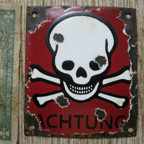 Title (ebay affiliate link): 100% ORIGINAL - Porcelain Sign 1939-1945, WWII, Danger, Skull & Crossbones No 89