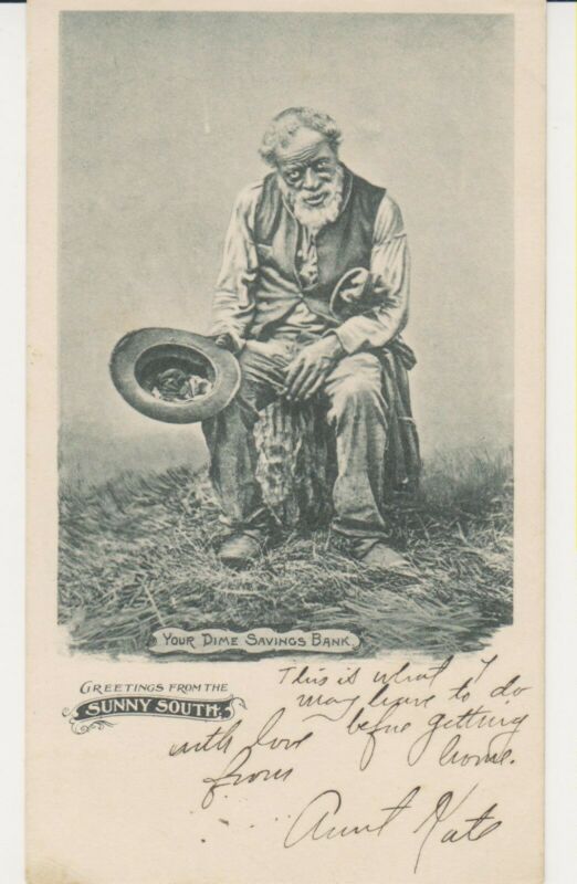 Title (ebay affiliate link): Black Americana Postcard, Dime Savings Bank, Greetings Sunny South, ca 1904