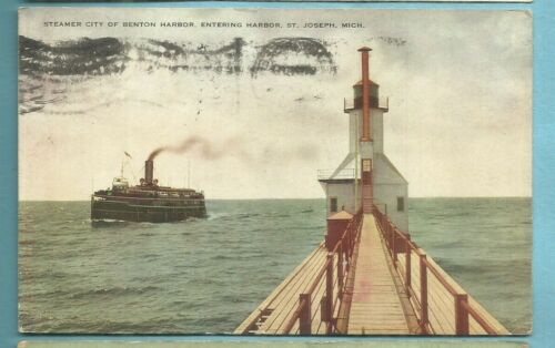 St. Joseph, Mi/ Steamer City of Benton Harbor/ light house/ dock/non-linen pc