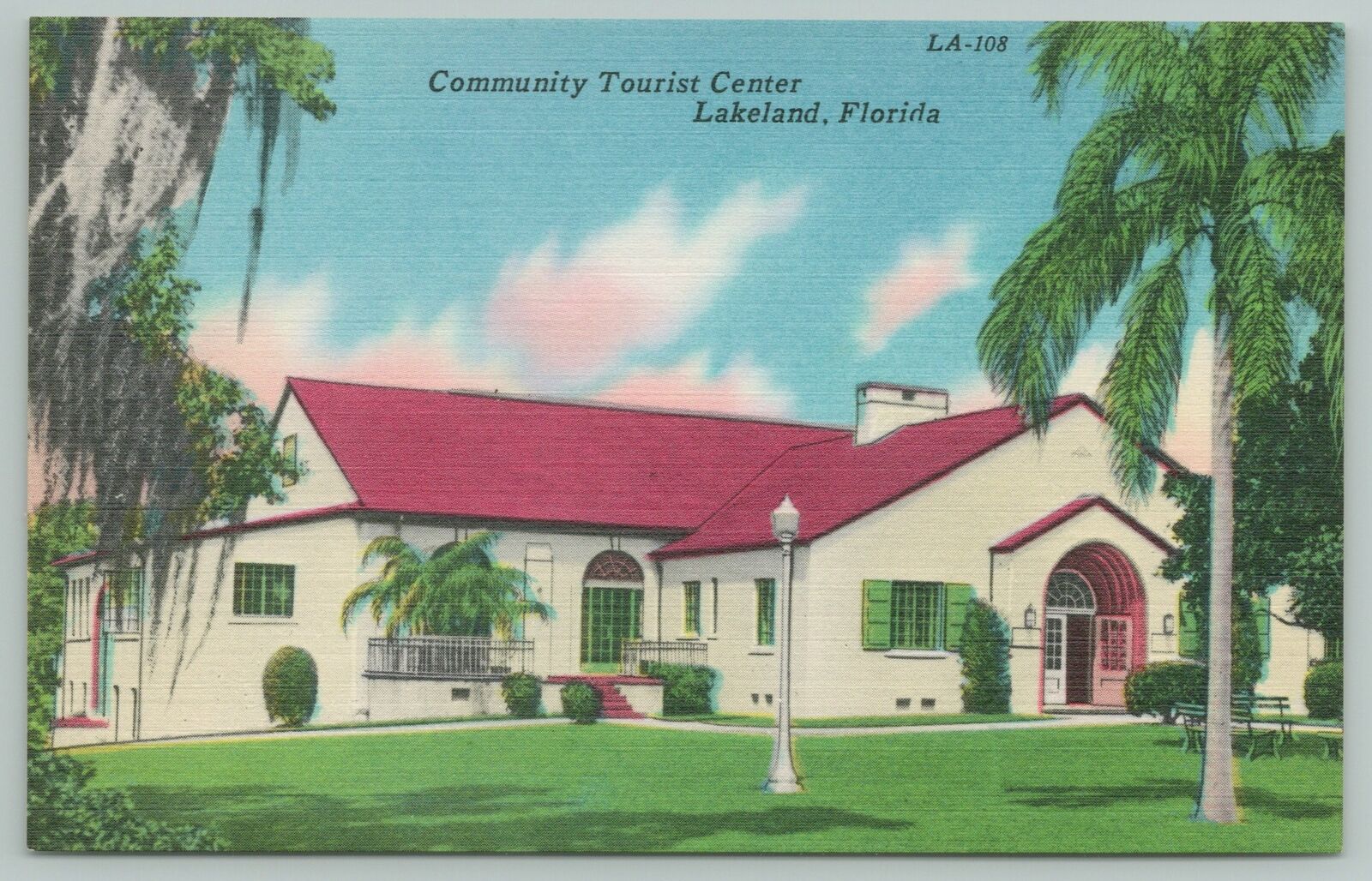 Lakeland Florida~Community Tourist Center~1940s Linen Postcard