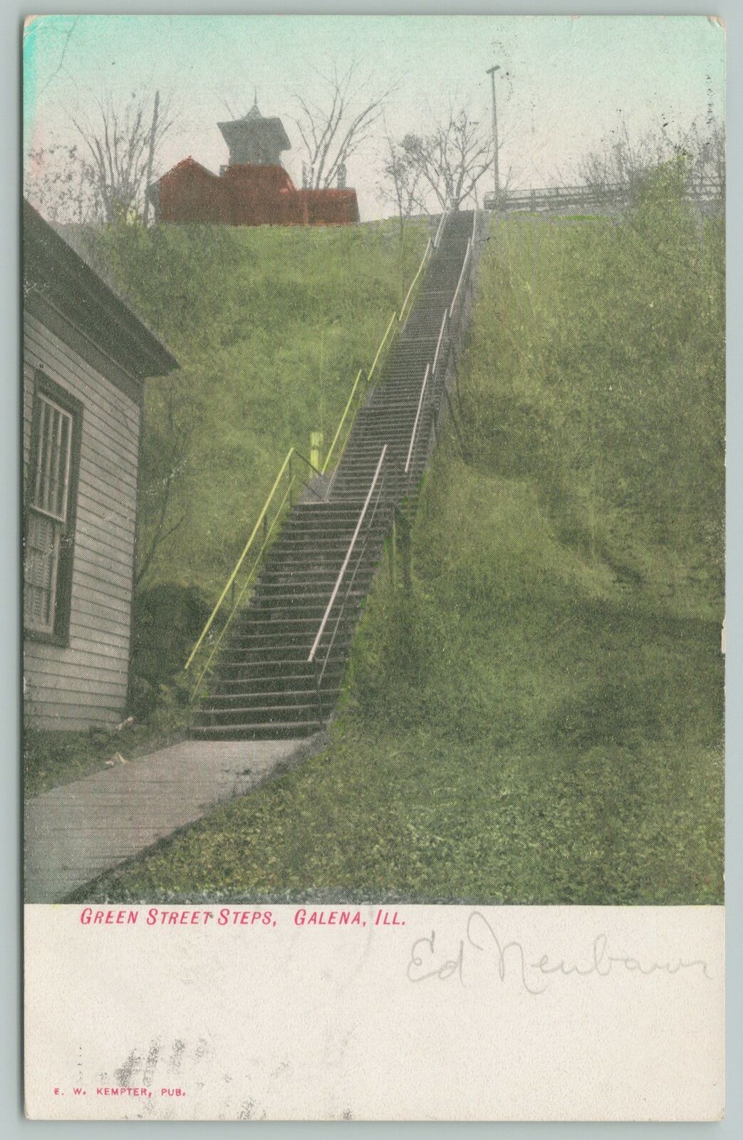 Galena Illinois~Green Street Steps~c1910 Postcard