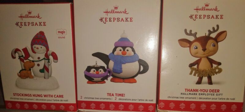 Hallmark Keepsake Tea Time, Stockings hung with Care, Ornament Lot of 3