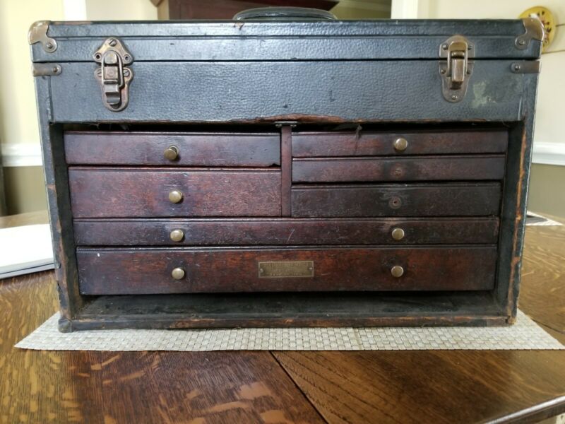 Title (ebay affiliate link): Antique 7 Drawer PILLIOD #55 Leatherette MAHOGANY DRWR FRONT Machinist CHEST