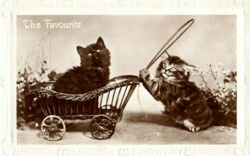 VINTAGE postcard: PRETTY KITTEN CATS WITH A TOY PRAM